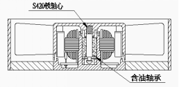 風扇軸承采用1pcs含油軸承,轉子軸心選用SUS420材質,軸心與軸承為線接觸,滑動摩擦;對于含油軸承風扇,軸承含浸油品和外加潤滑油品的選擇很重要,首要條件為兩者要有機相結合及兼溶,這樣才能起到最佳的初期潤滑效果,否則油品易產生變質,積碳等異。