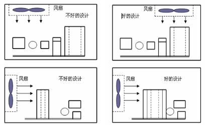 ◆ 對溫度較敏感的零件應(yīng)該靠近入風(fēng)口,以保持較低的操作溫度。