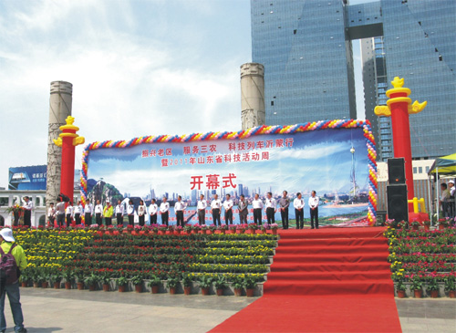 5月14日,“振興老區(qū) 服務(wù)三農(nóng) 科技列車沂蒙行”活動(dòng)在臨沂市舉行。山東省委常委、副省長孫偉、省政協(xié)副主席李德強(qiáng)出席開幕式?萍疾奎h組成員、紀(jì)檢組組長郭向遠(yuǎn)出席開幕式,科技部等部委有關(guān)領(lǐng)導(dǎo)、科技列車專家服務(wù)團(tuán)全體成員,臨沂市副市長左沛廷等有關(guān)領(lǐng)導(dǎo)以及社會(huì)各界代表也參加了開幕式。